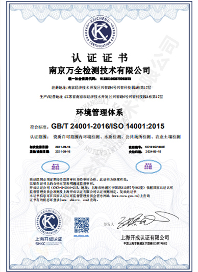 南京萬全檢測技術(shù)有限公司,籌建于2013年1月,注冊資金500萬,公司坐落于南京經(jīng)濟技術(shù)開發(fā)區(qū)興智路6號興智科技園A棟17層,實驗室占地面積1750余平米。公司是一家獲得省級CMA計量認證資質(zhì)、具有獨立法人、政府認可的綜合性、專業(yè)性的檢測機構(gòu)。環(huán)境監(jiān)測業(yè)務(wù)是其重要的檢測業(yè)務(wù)之一,目前已獲得省級計量資格認可項目314項,設(shè)備齊全,具有較強的技術(shù)能力。
